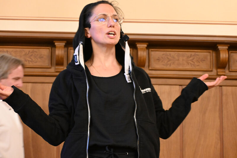 Das Publikum wurde von Anfang an mit einbezogen: Zunächst gab es eine unterhaltsame Übung, wie man am besten applaudiert und jubelt. Mit ihren Stichworten wurden die Geschichten erzählt und bei einem Puppenspiel durften zwei Personen aus dem Saal die Hände und Köpfe der Schauspielerinnen bewegen. Höhepunkt war das Märchen. Auf Vorschlag aus dem Publikum gaben die vier die Geschichte vom „Gänsehirt“ zum Besten. Was zunächst ein paar Minuten auf der Bühne dauerte, wurde dann noch dreimal erzählt: in 60 Sekunden, 30 Sekunden und in sensationellen 15 Sekunden. Applaus und La-Ola-Welle waren die Reaktion. Zum Schluss gab es ein Potpourri mit verschiedenen gespielten Figuren des Abends. Auch hier wurde noch einmal die Kunst der vier Improkokken deutlich, denn sie können die Texte nicht nur sprechen – auch gesangliche Improvisation gehört bei ihnen dazu.
