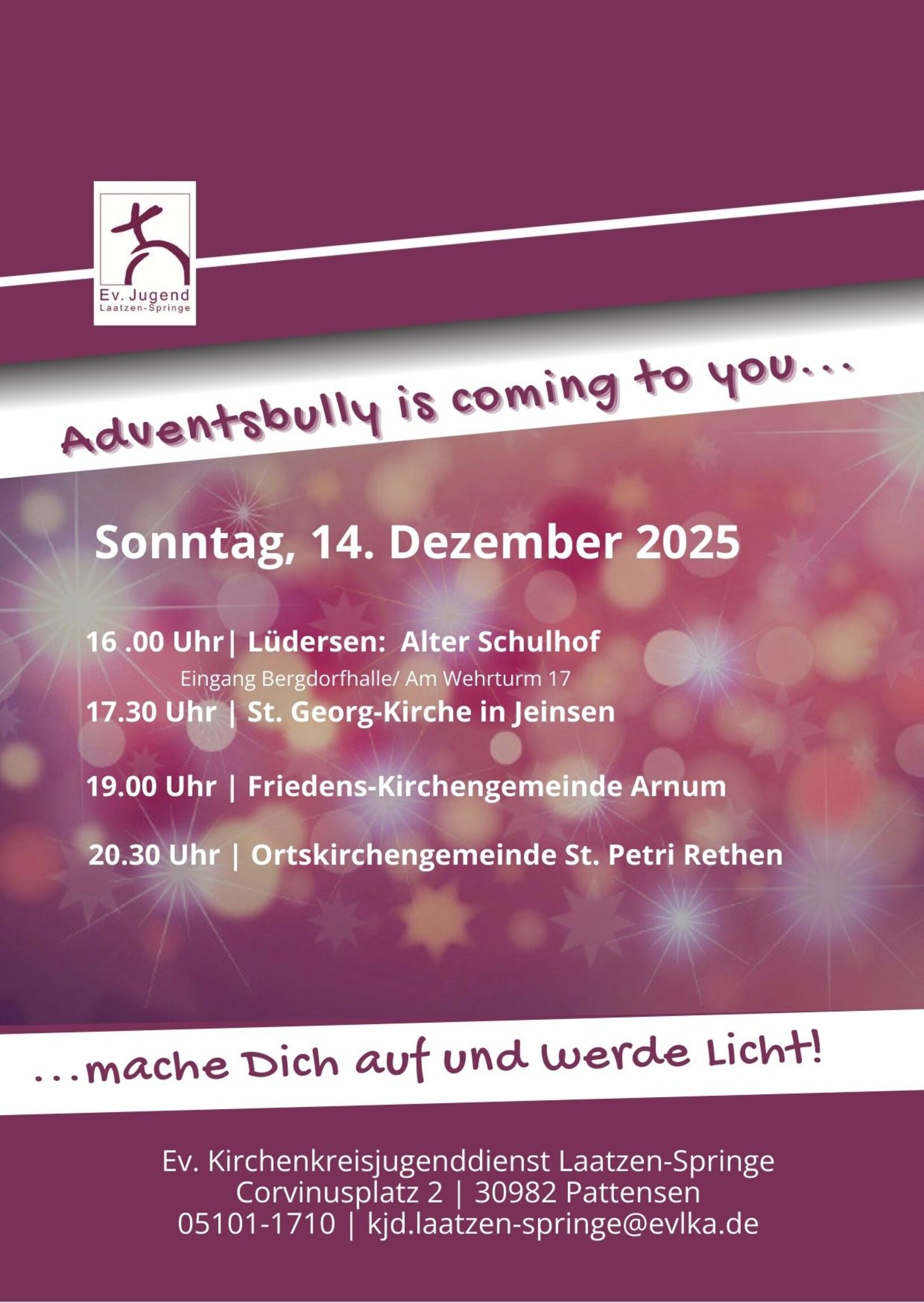 Der Adventsbully kommt am 14.12. und hat das Friedenslicht im Gepäck.