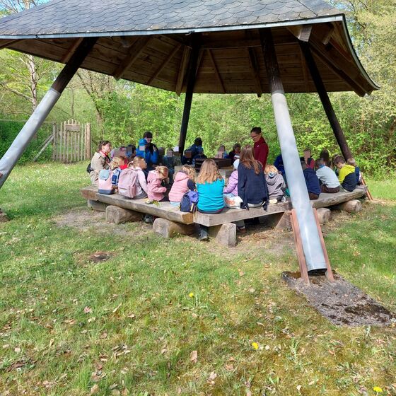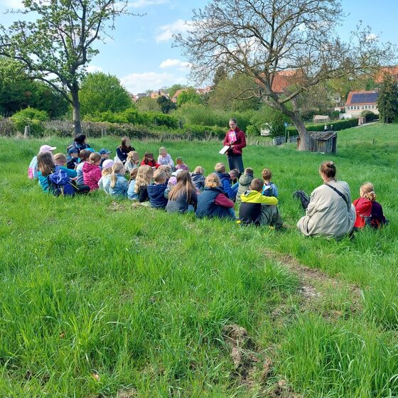Wir hatten uns mit 30 Kindern vor dem Pfarrhaus in Eldagsen getroffen. Die Sonne strahlte, wir und die Kinder auch.