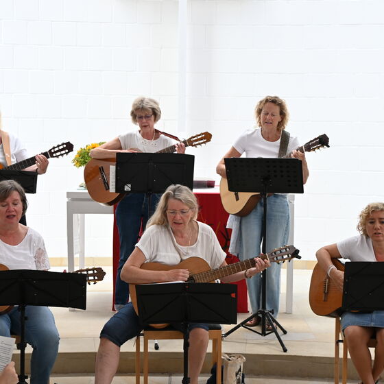 Alle, die sich an ihre Taufe erinnern wollten, oder sich für ihre Bedeutung interessieren, waren dabei also genau richtig.Eröffnet wurde das Gemeindefest mit einem Abendmahlsgottesdiens um 10 Uhr. Organistin Olga Kraus und der Gitarrenkreis unter der Leitung von Britta Sandig sorgten für die musikalische Begleitung.
