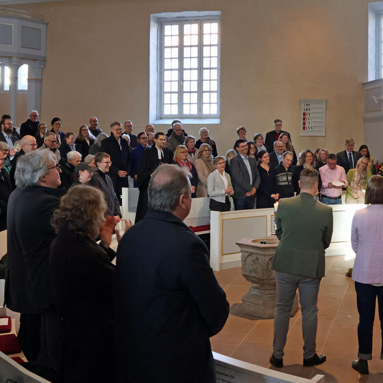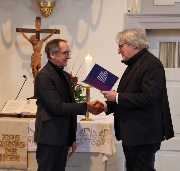 In seinem Dank an alle Mitwirkenden des Gottesdienstes und erklärte Joachim Richter, wie gut und wichtig so ein Gottesdienst für den Übergang in den Ruhestand ist. Mit einem Zitat aus Uwe Timms Buch „Alle meine Geister“ gab er der versammelten Gemeinde einen schönen Anstoß zum Nachdenken mit. Der Satz lautete: „Erinnern ist ein merkwürdiges Vergessen“. Er gab damit auch der Verwunderung Ausdruck, dass alle es so lange mit ihm ausgehalten haben und dass er jeden Tag mit Vorfreude den Weg ins Amt antrat. Nach der täglichen Runde durch die Büros waren viele belastenden Probleme nicht mehr so belastend und ließen sich gemeinsam lösen. Der Dienst im Kirchenamt war für ihn „Traum und Erfüllung“.