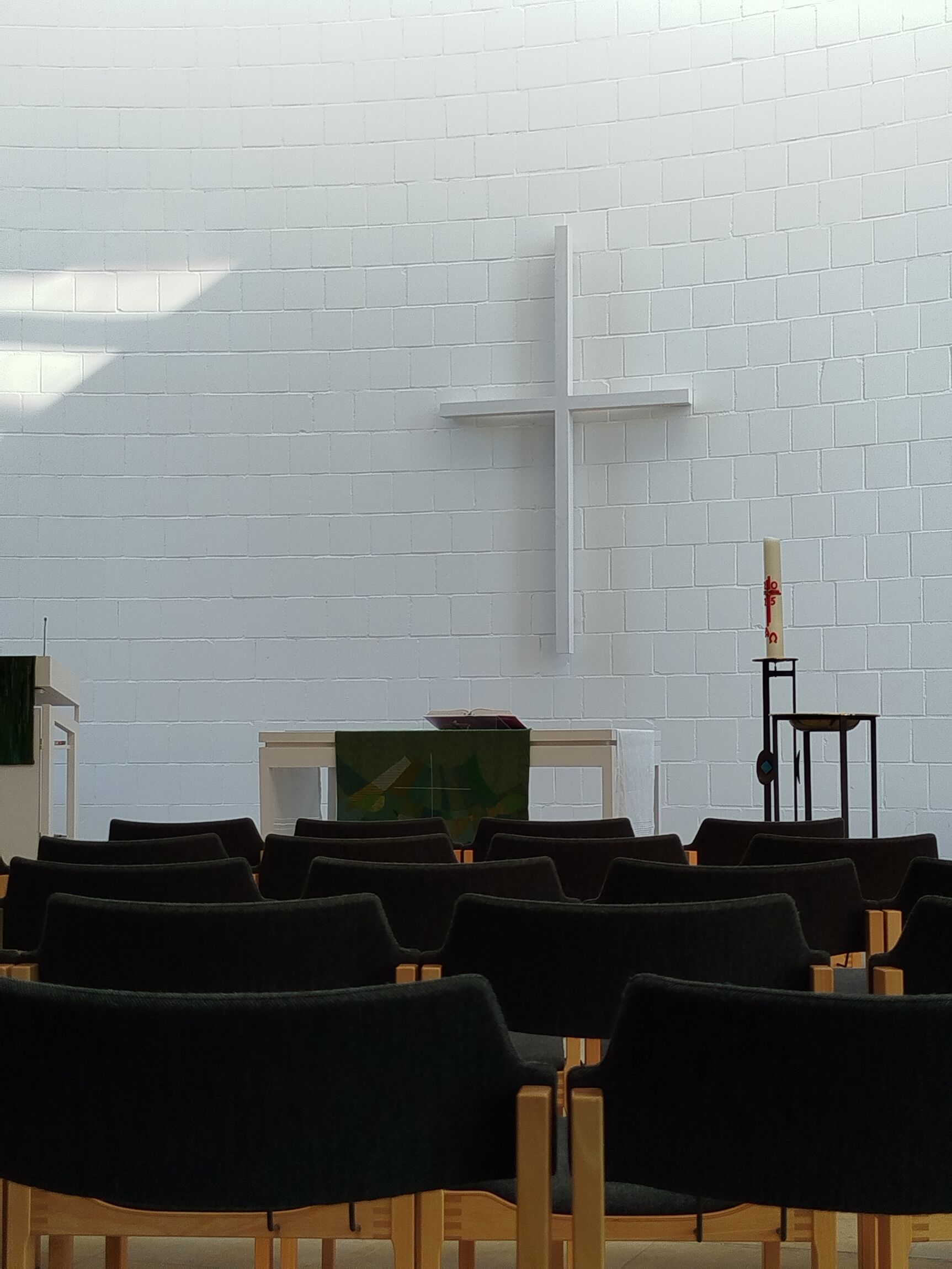 Ich bin manchmal in unserer Kirche, wenn kein anderer da ist. Dann setze ich mich weit nach hinten, schaue nach vorne und genieße die Stille.