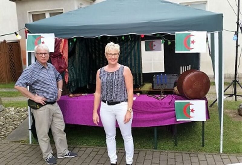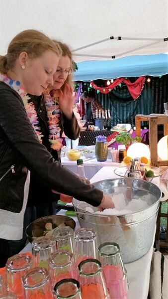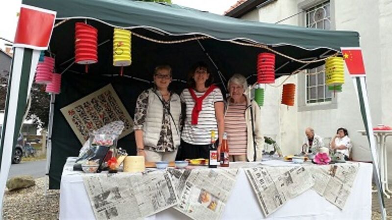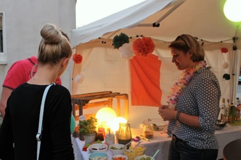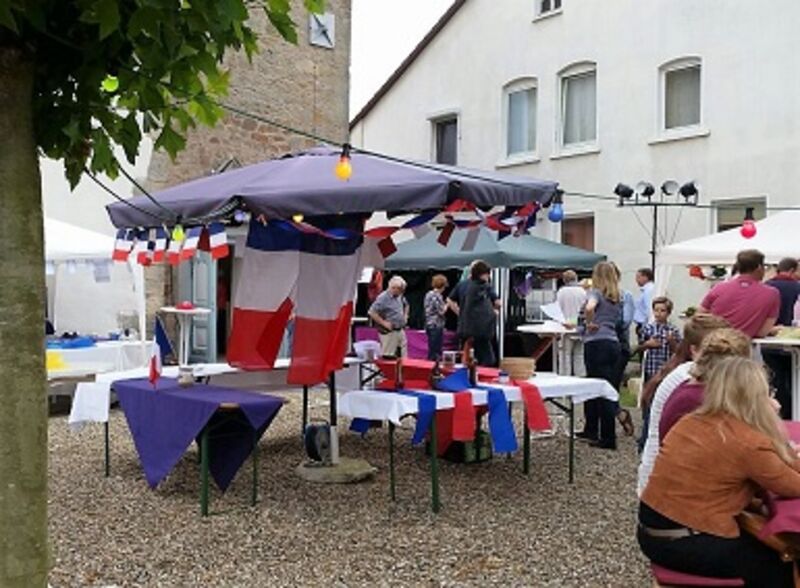 All die Verschiedenartigkeit der Kulturen ist im Anschluss auf dem Kirchplatz erfahrbar. So lädt ein israelischer Stand zu Hommus, Mazzen und Fallafeln ein und machen so die Kultur des Schwiegersohns David aus dem Film greifbar. Am chinesischen Stand kann man Frühlingsrollen, Chinasuppe und Krupuk genießen. Bei Raschid in Algerien gibt es Tabouleh, Feigen, Datteln und Oliven. Und alkoholfreie Cocktails, Smoothies und Obstschälchen werden am Stand der Elfenbeinküste angeboten. In der Mitte ist der Stand von Monsieur Claude mit Wein, Baguette und Käsespieße.