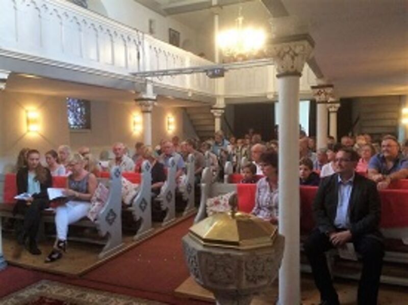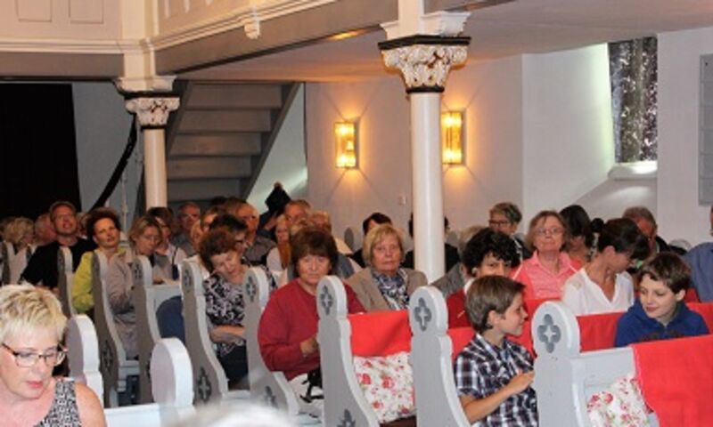 Die Glocken läuten den Abend ein und die kleine Hüpeder Kirche ist sehr gut besucht. Gezeigt wird der Film: Monsieur Claude und seine Töchter.