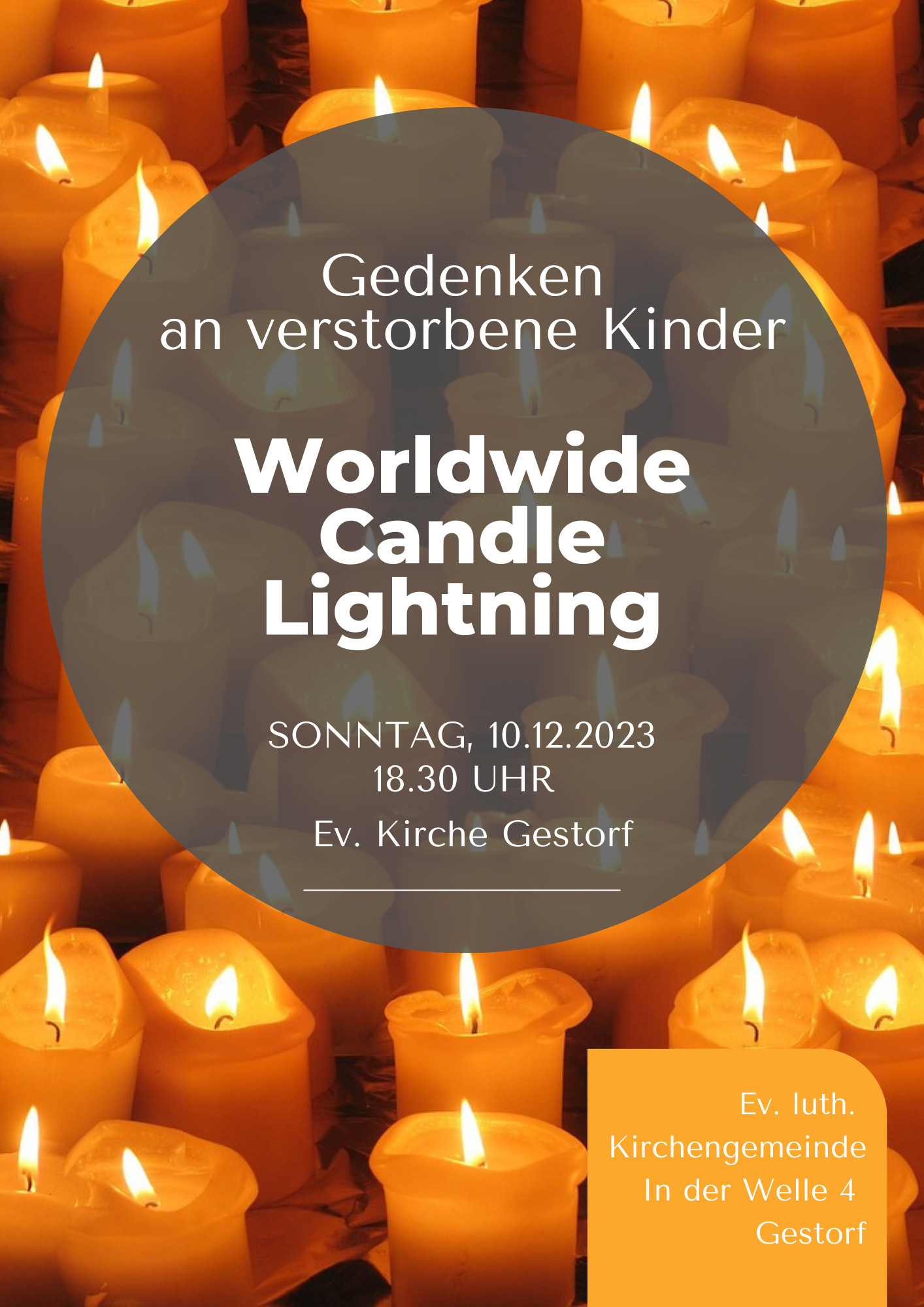 „Jedes Jahr am 2. Sonntag im Dezember stellen Betroffene weltweit um 19.00 Uhr Kerzen ins Fenster. Während die Kerzen in der einen Zeitzone erlöschen, werden sie in der nächsten entzündet. So entsteht eine Lichterwelle, die in 24 Stunden die ganze Welt umringt. Jedes Licht im Fenster steht für das Wissen, dass diese Kinder das Leben erhellt haben, und sie nie vergessen werden“ (Bundesverband verwaister Eltern e.V.).