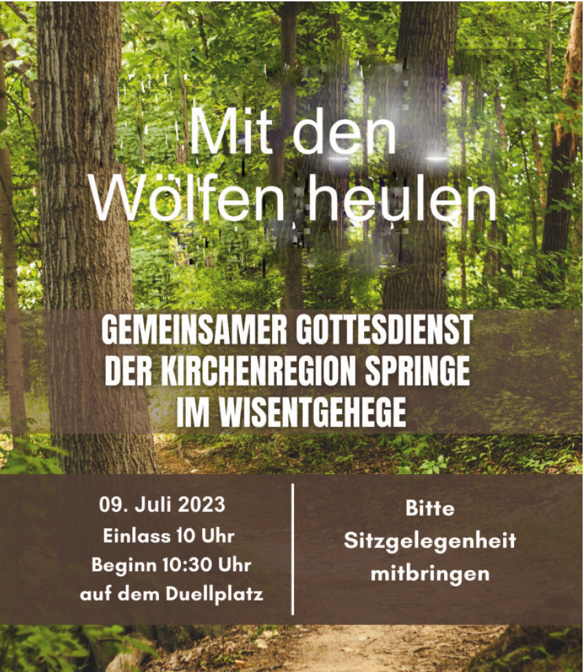 Am nächsten Sonntag ist es wieder so weit: Mit den Kirchengemeinden der Region laden wir zum gemeinsamen Gottesdienst zum Thema "Mit den Wölfen heulen" ins Wisentgehege ein!