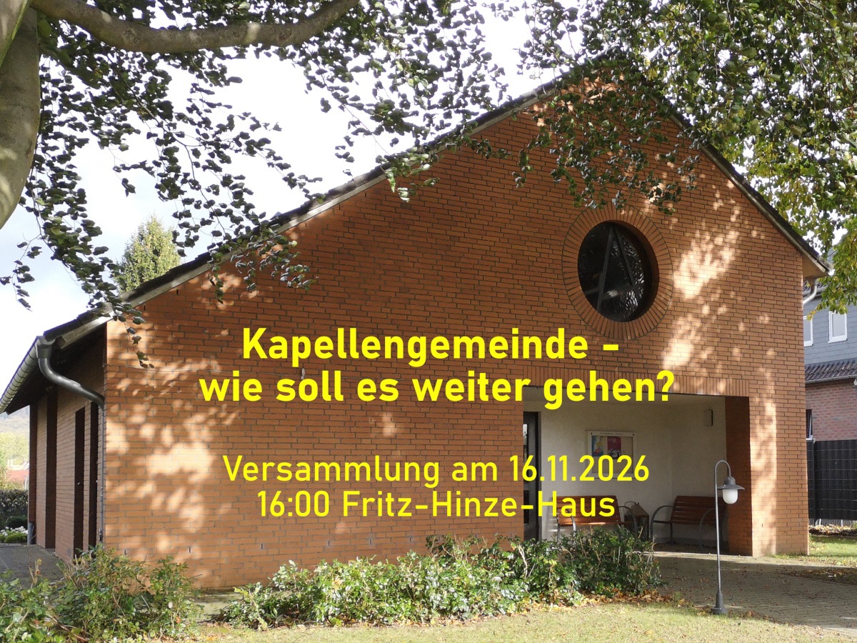 Wir, der Kirchenvorstand der Johannesgemeinde Völksen, möchten Sie daher ganz herzlich einladen, mit uns ins Gespräch zu kommen, um gemeinsam mit Ihnen die weitere Zukunft der Kapellengemeinde zu besprechen. Unser derzeitiger Vakanz-Vertreter, Pastor Anselm Stuckenberg, wird ebenfalls anwesend sein.