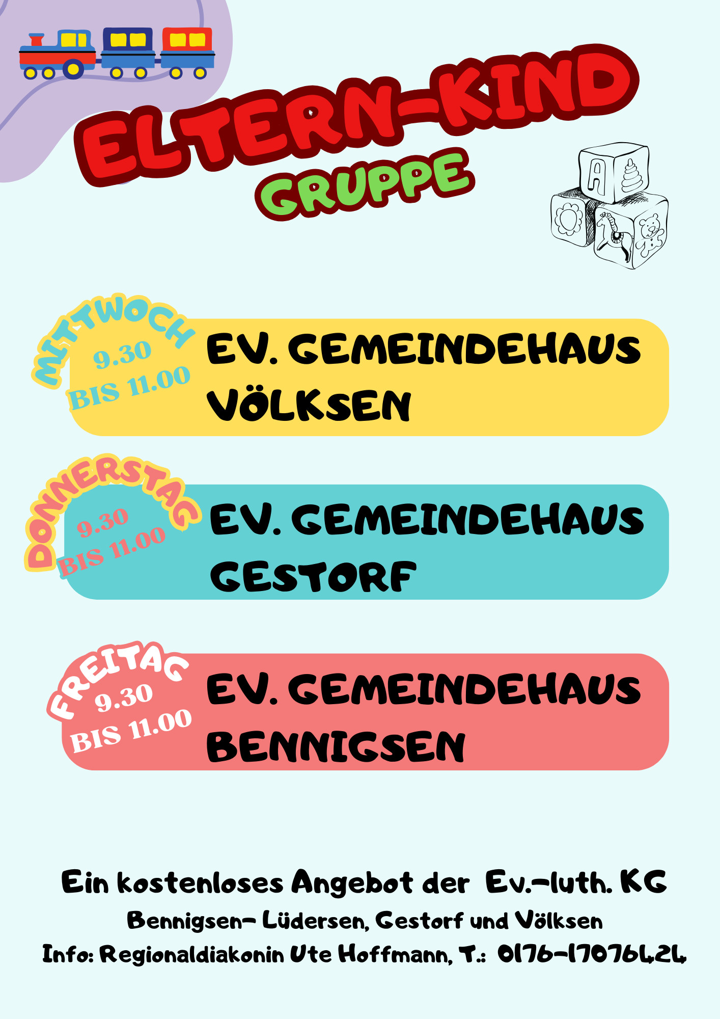 In Völksen treffen wir uns Mittwochs von 09:30 - 11:00 im Gemeindehaus. Dazu laden wir herzlich ein!