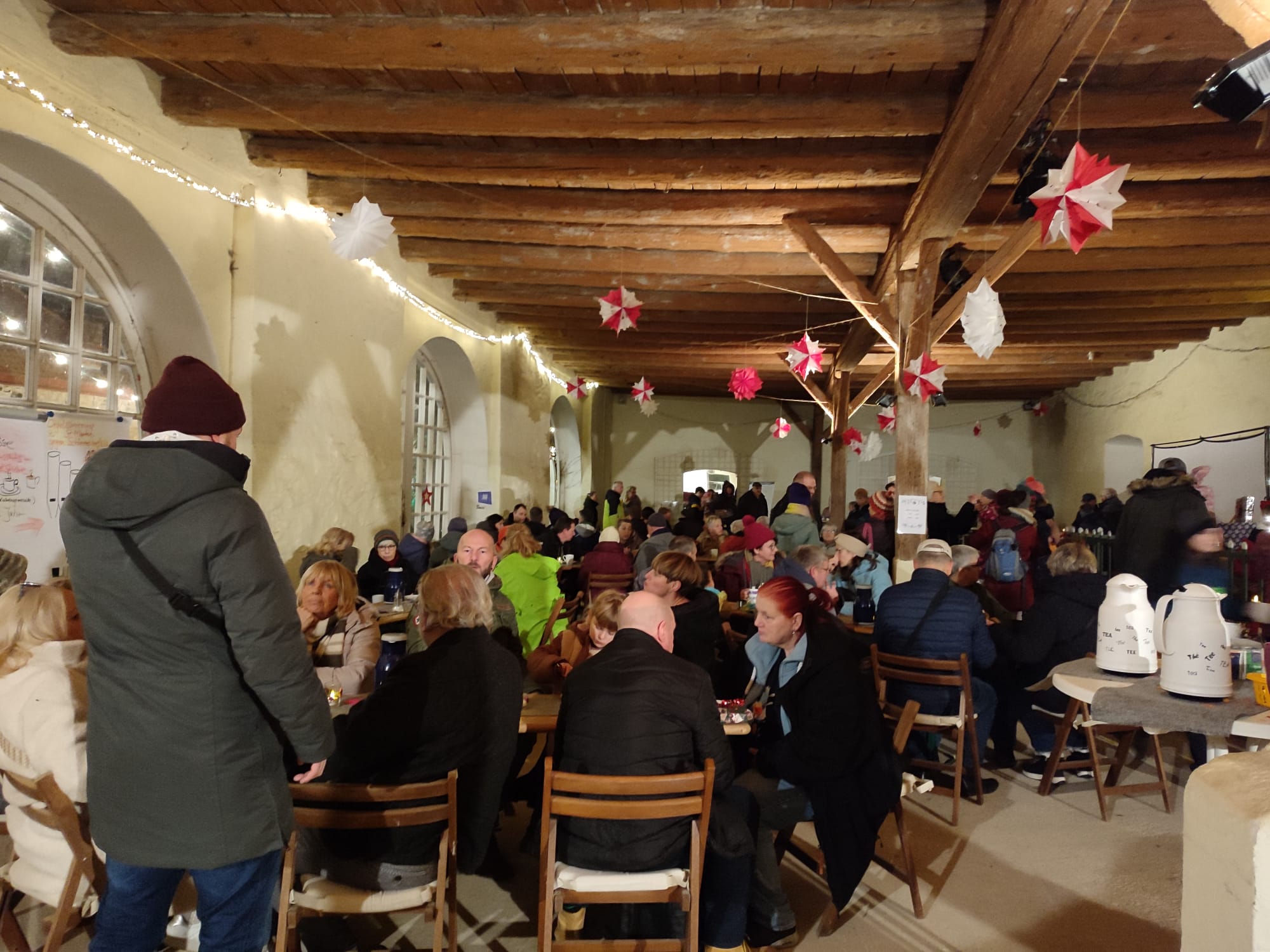 Im Gepäck hat das KJD Team natürlich noch das Friedenslicht von Bethlehem. Dieses wird direkt in der Mitte für alle gut sichtbar aufgestellt. Die drei Diakonninnen feiern mit uns eine kurze Andacht und im Anschluss wird das Friedenslicht verteilt. Viele haben ihre eigenen Laternen mitgebracht und entzünden ihr Friedenslicht für zu Hause. Die wunderschöne Kulisse wird von Vielen für Schnappschüsse genutzt. Und während die Weihnachtsplaylist wieder aus den Lautsprechern trällert, können alle Glühwein und Glühpunsch genießen. Ganz dickes Danke an alle, dass Ihr eure eigenen Becher mitgebracht habt ;-) Es waren wirklich tolle Begegnungen und Gespräche mit Euch an diesem 3. Advent auf dem Dorfplatz im Bergdorf Lüdersen. ✨🌟💫