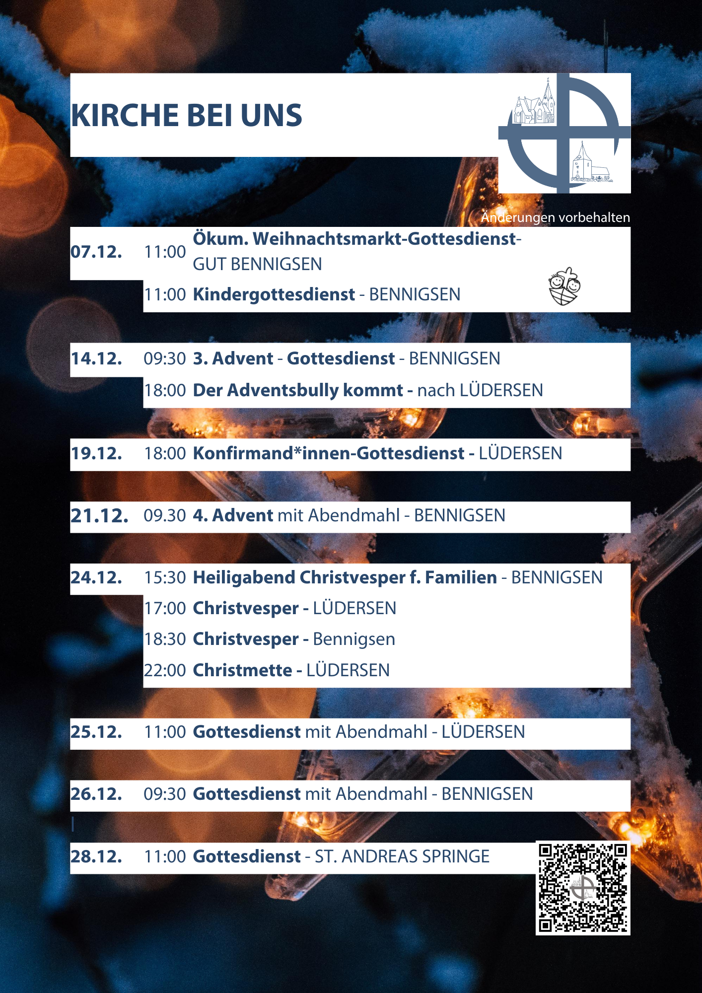 | 24.12.2025 | 15:30 | Bennigsen | Christvesper für Familien | ||||||