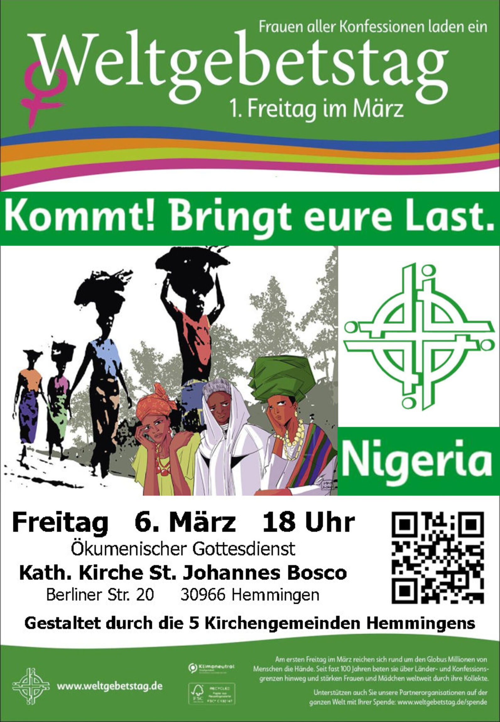 Am Freitag, dem 6. März, um 18 Uhr, laden wir zu einem ökumenischen Gottesdienst in die Kath. Kirche St. Johannes Bosco nach Hemmingen ein.